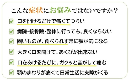 当院では、顎関節症のような「原因が見えにくい不調」も、丁寧に全身をみながら対応しています。