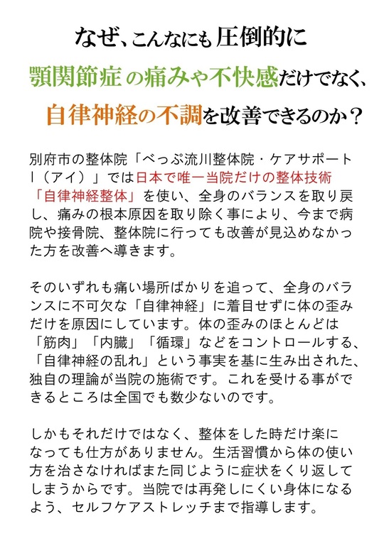 つまり、自律神経のバランスが改善することで、ゆがみ・体液の流れ・毒素排泄・バランスも改善して、本来の自然治癒力(自分でよくなるチカラ)を高めることができるんです。これが、ぶり返さないカラダを手に入れる根本改善です。